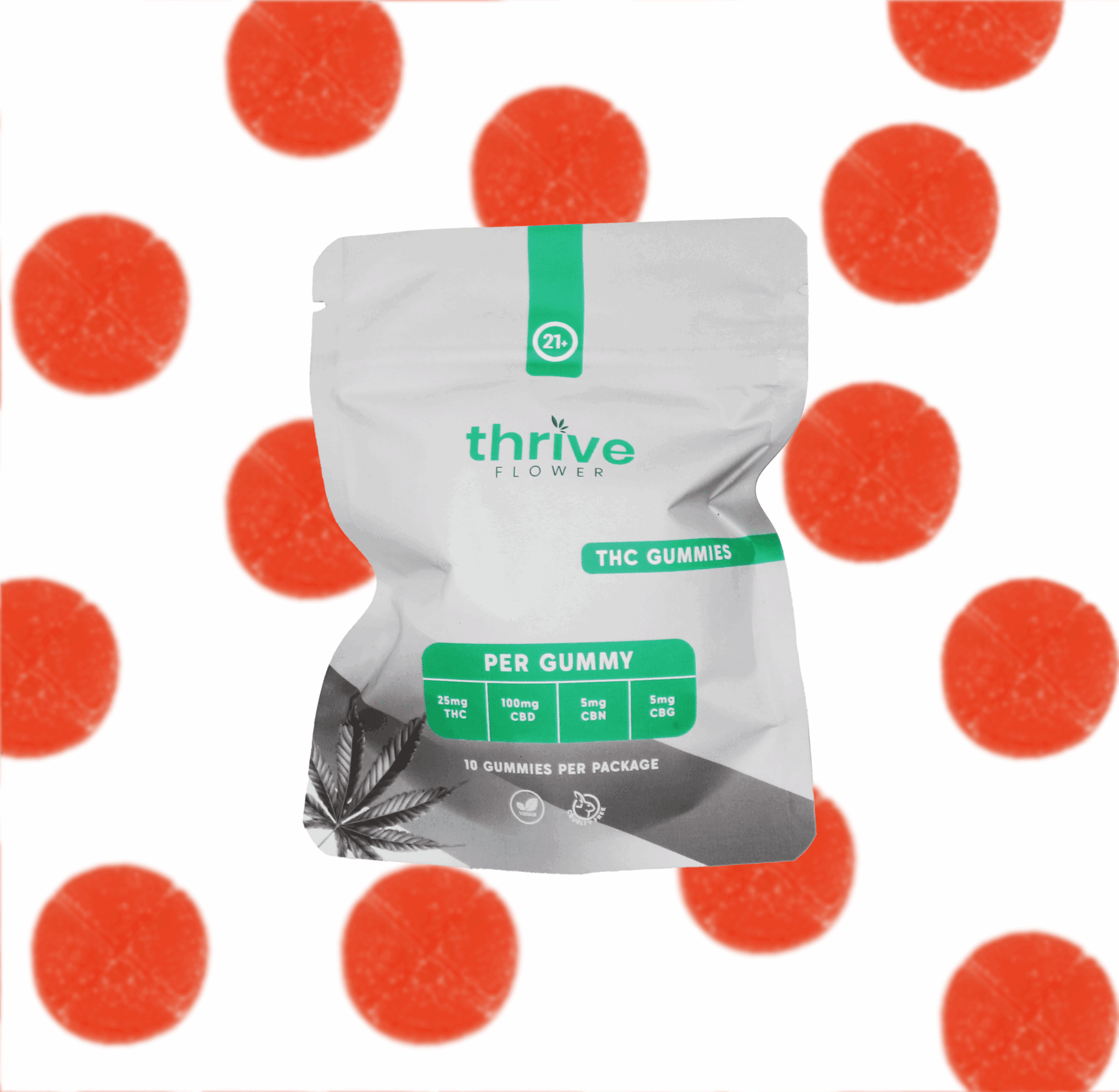 Thrive Flower is now one of the first to offer Delta 9 THC Gummies! These gummies are flavor packed, carefully tested for quality and legal compliance, and beautifully packaged in childproof mylars for your enjoyment and safety.
